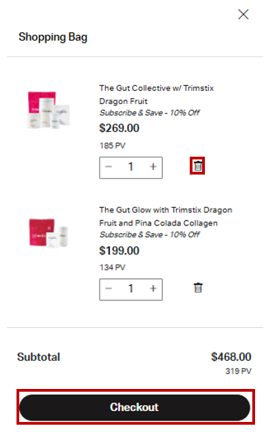 Step 6: When you have all the products added to the Subscription, click on the “Checkout” button.