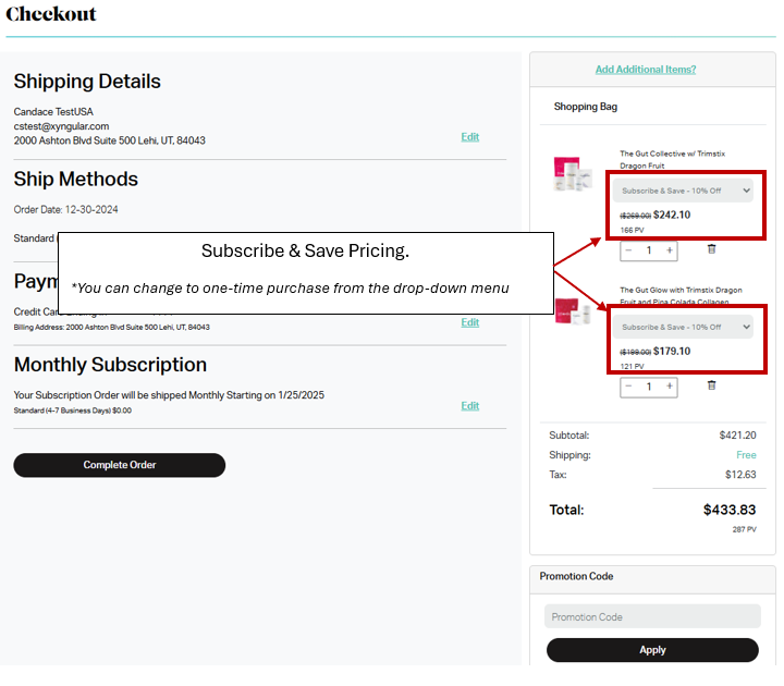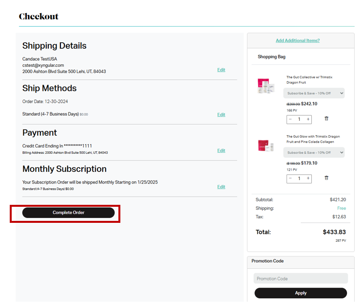Step 10: To save updates made to the Subscription, click “Complete Order”.